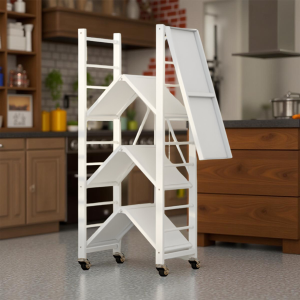 رف عربة تخزين قابلة للطي مكون من 4 طبقات - أبيض - الأبعاد 71.5×34×124 سم