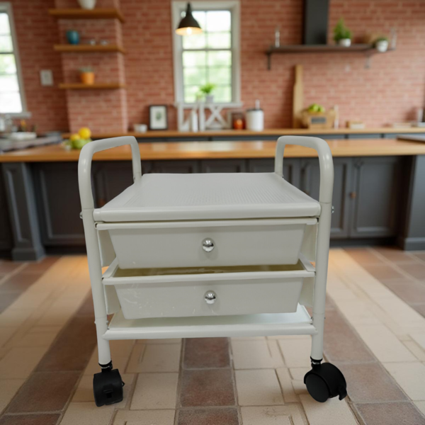 عربة تخزين من مستويين - 38.5×32×36 سم - أبيض