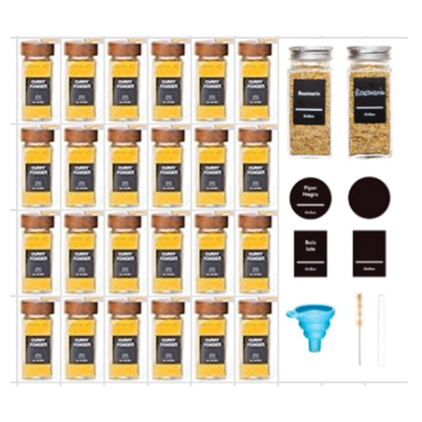 مجموعة من 24 برطمان زجاجي للتوابل مع غطاء وقمع وفرشاة وقلم
