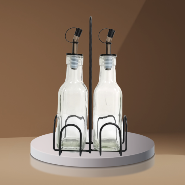 2 قطعة من زجاجات الزجاج الشفافة مع حامل بمقبض أسود