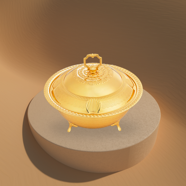 وعاء التمر المارجان مع غطاء - ذهبي بالكامل - كبير