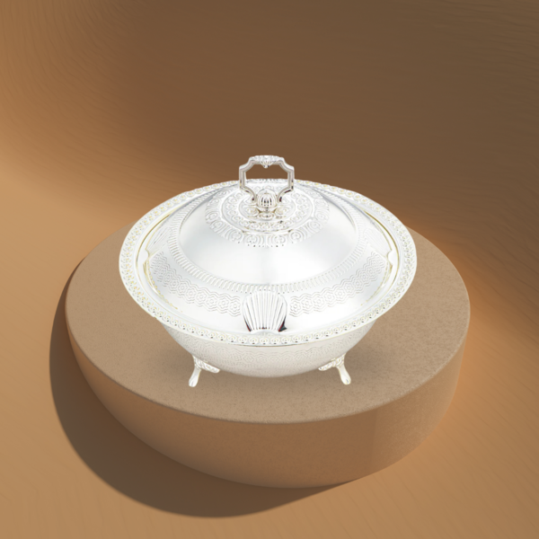 وعاء التمر المارجان مع غطاء - فضي وذهبي - كبير