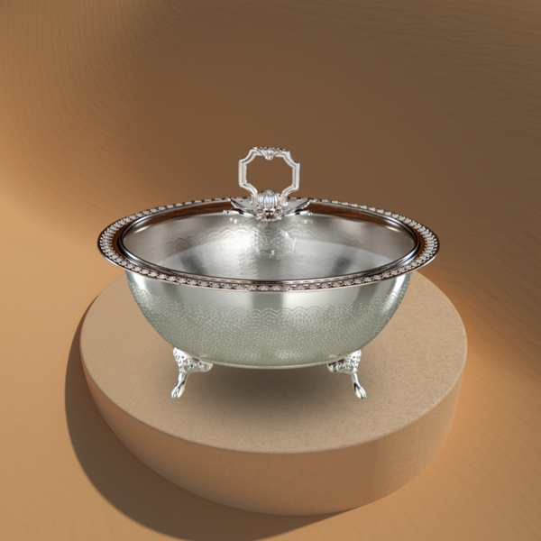 وعاء تمر المرجان مع غطاء – فضي بالكامل