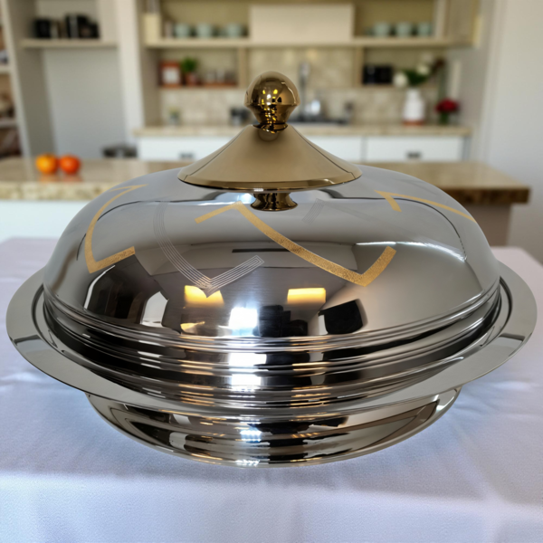 طبق تسخين من الفولاذ المقاوم للصدأ أينايز بخط ذهبي - 4000 مل
