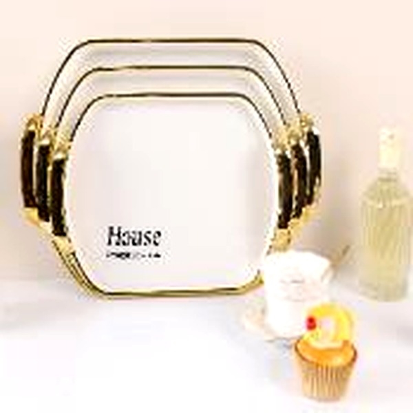صينية بلاستيكية بيضاوية الشكل مطلية برقائق ذهبية مع مقبض