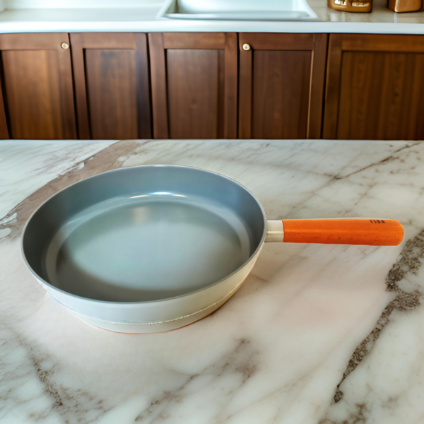 مقلاة من الستانلس ستيل مع مقبض خشبي - 24 سم