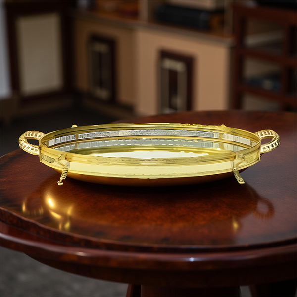 صينية مرآة بيضاوية مع مقبض