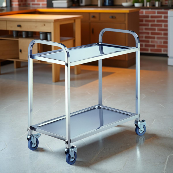 عربة مكونة من طبقتين من الفولاذ المقاوم للصدأ - الأبعاد 85×45×89 سم