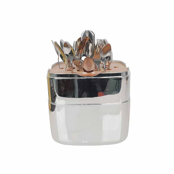 طقم أدوات مائدة من الفولاذ المقاوم للصدأ مع صندوق - فضي - 24 قطعة
