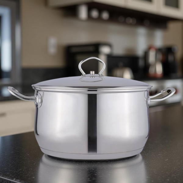 قدر طهي عميق من الفولاذ المقاوم للصدأ مع غطاء - 34 سم