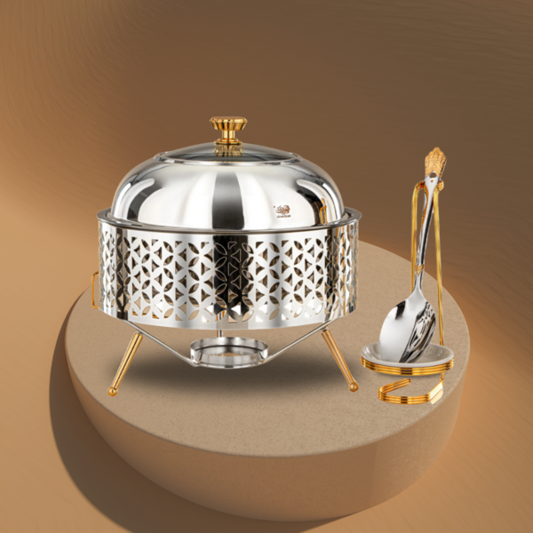طبق تسخين من الفولاذ المقاوم للصدأ - 3.0 لتر - فضي + ذهبي