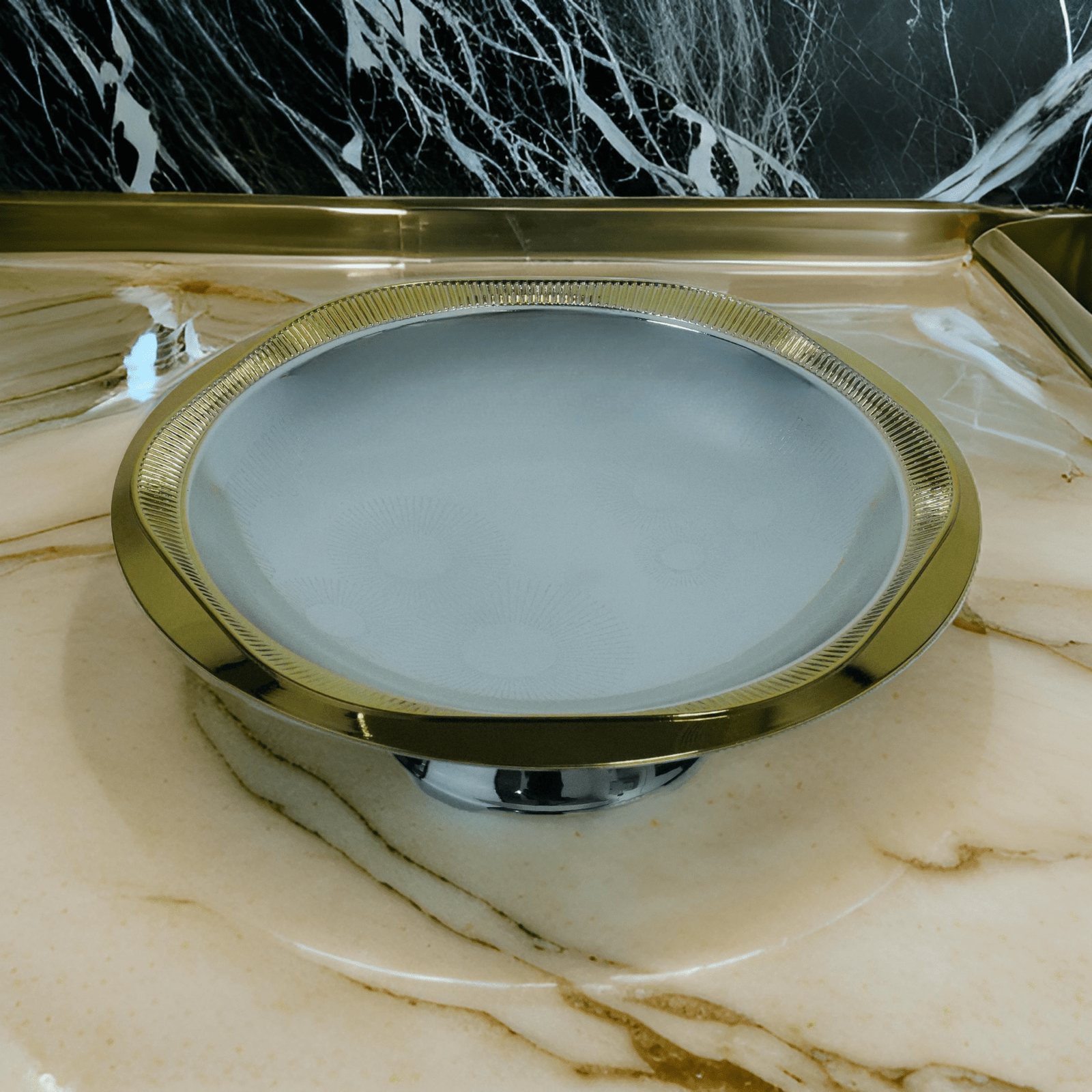 صينية فاكهة دائرية من الفولاذ المقاوم للصدأ مع حامل - ذهبي/فضي