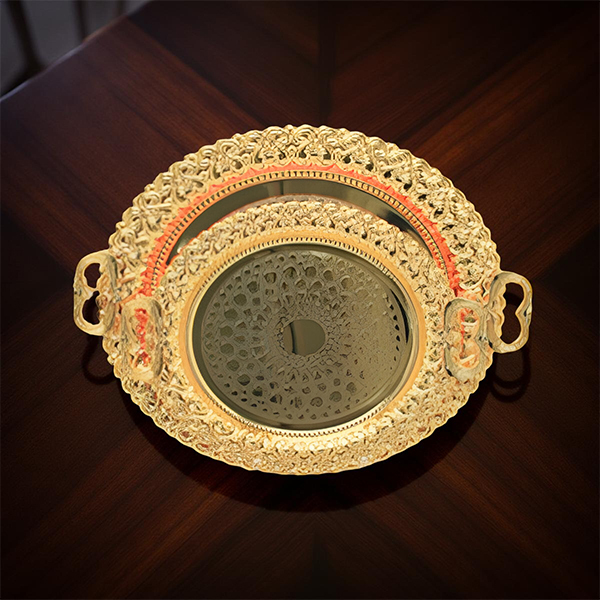 طبق أفستو من الستانلس ستيل مع غطاء زجاجي - 22 سم