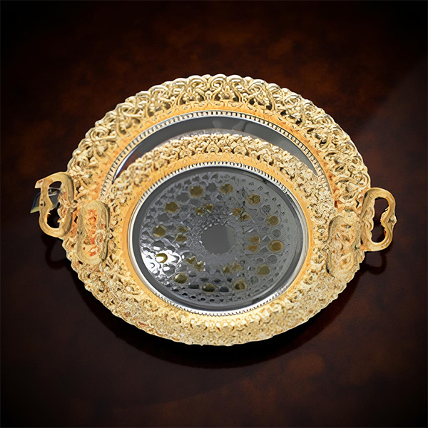 صينية تقديم من الستانلس ستيل مع مقبض