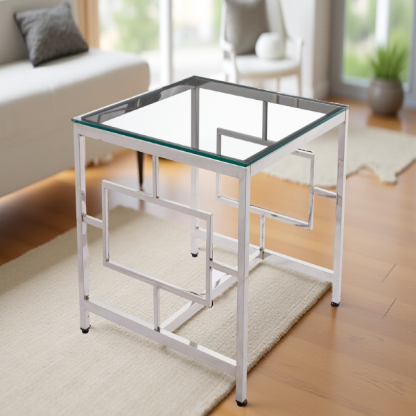 طاولة من الفولاذ المقاوم للصدأ والزجاج - 70×70×52