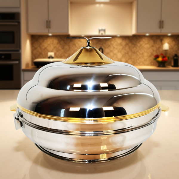 طبق أفستو من الستانلس ستيل مع غطاء زجاجي - 22 سم