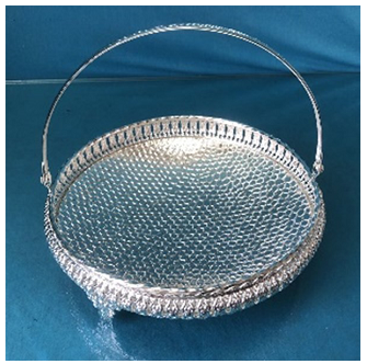 SILVER ROUND TRAY W/HANDLE -23X23X8X19CM