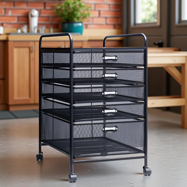 عربة تخزين بخمسة رفوف - أسود 29×37.5×90.5
