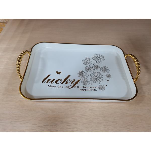صينية بلاستيكية مستطيلة بمقبض خرزي