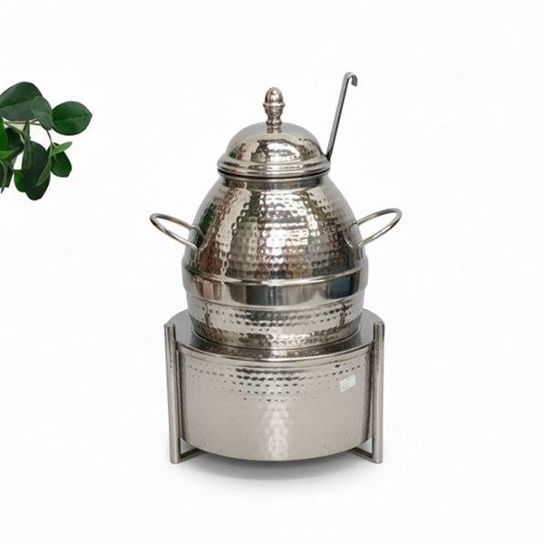 S/STEEL JARRA PHOOL WITH STAND AND SPOON-1.5L-SILVER+GOLD