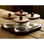 4 PCS GLASS CANDY BOWL SET W/TRAY-9X9X5/21X21X1.5CM
