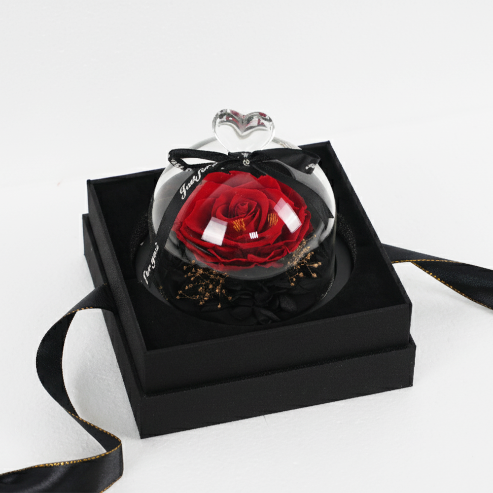 ARTIFICIAL ROSE FLOWER W/LOVE GLASS COVER-15X15X16CM