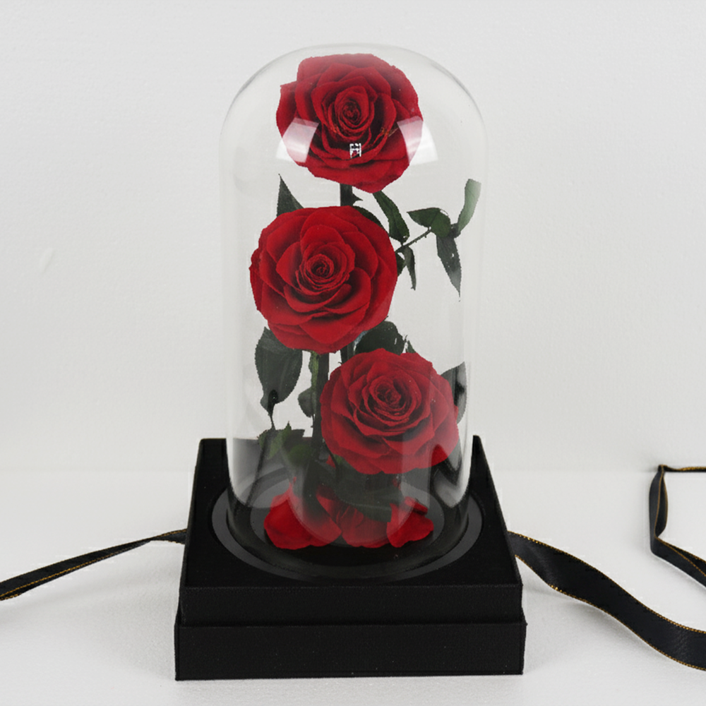 ARTIFICIAL MEDIUM ROSE IN GLASS COVER-14X22CM/18X18X27CM