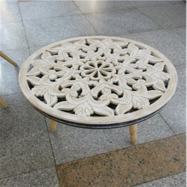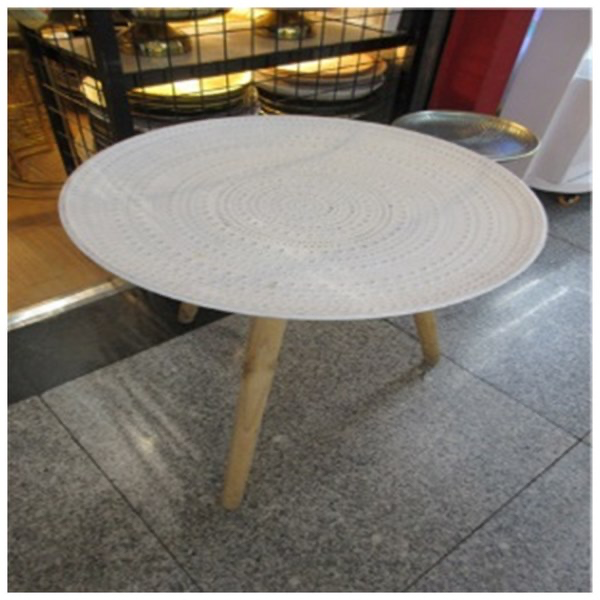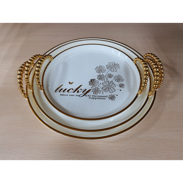 WHITE ROUND 3 PCS PLASTIC TRAY SET W/BEAD HANDLE-36X36X3.5