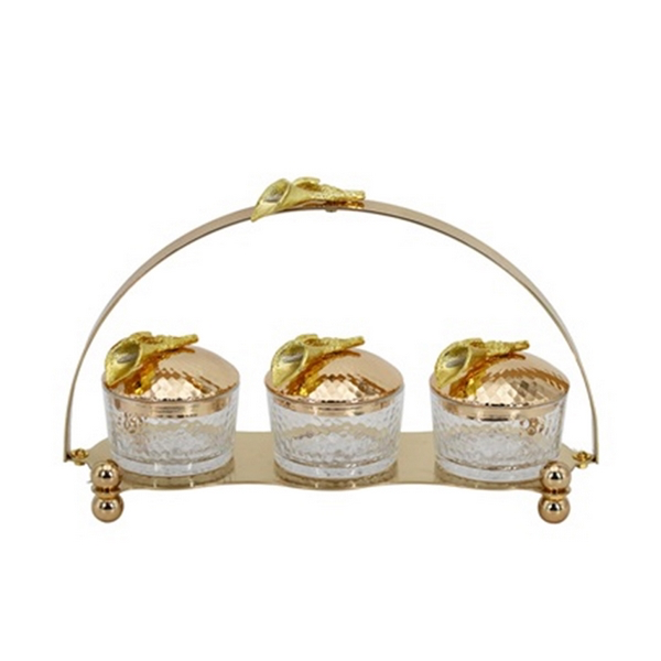3 PCS GLASS SUGAR JAR W/HOLDER-34X13X21.5CM