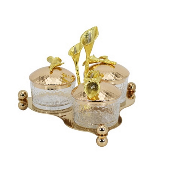 3 PCS GLASS SUGAR JAR W/HOLDER-34X13X21.5CM