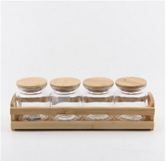 7 PCS GLASS JARS SET WITH BAMBOO RACK
