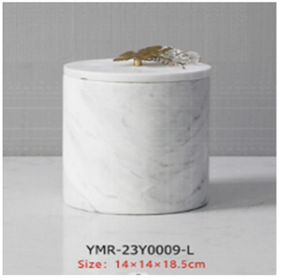 MARBLE ROUND BOX W/COVER-GOLD-14X14X19CM