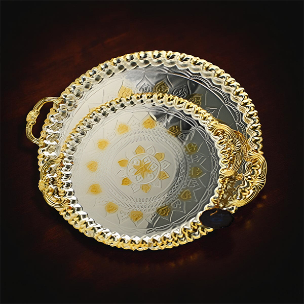 S/STEEL SERVING TRAY-SILVER/GOLD