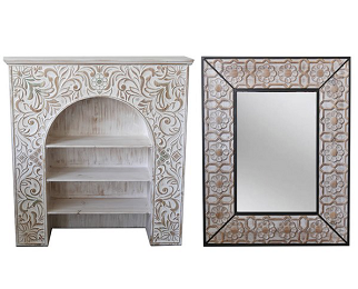 WOOD DECORATIVE FIREPLACES W/WALL MIRROR-105X29X113/75X6X95CM